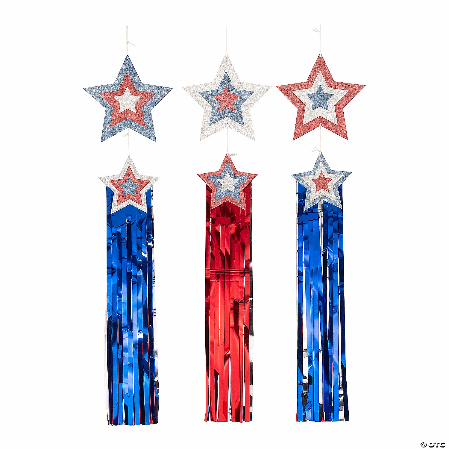 New ๐ฅ 3 Ft. Patriotic Star Hanging Decorations with Streamers – 3 Pc. ๐