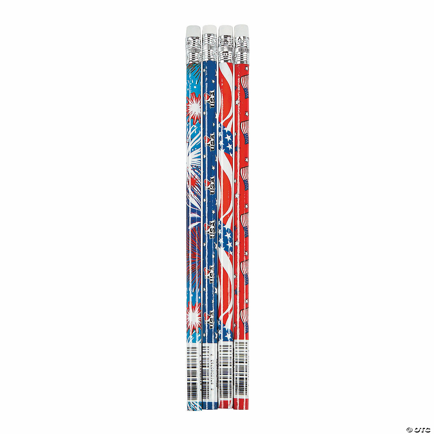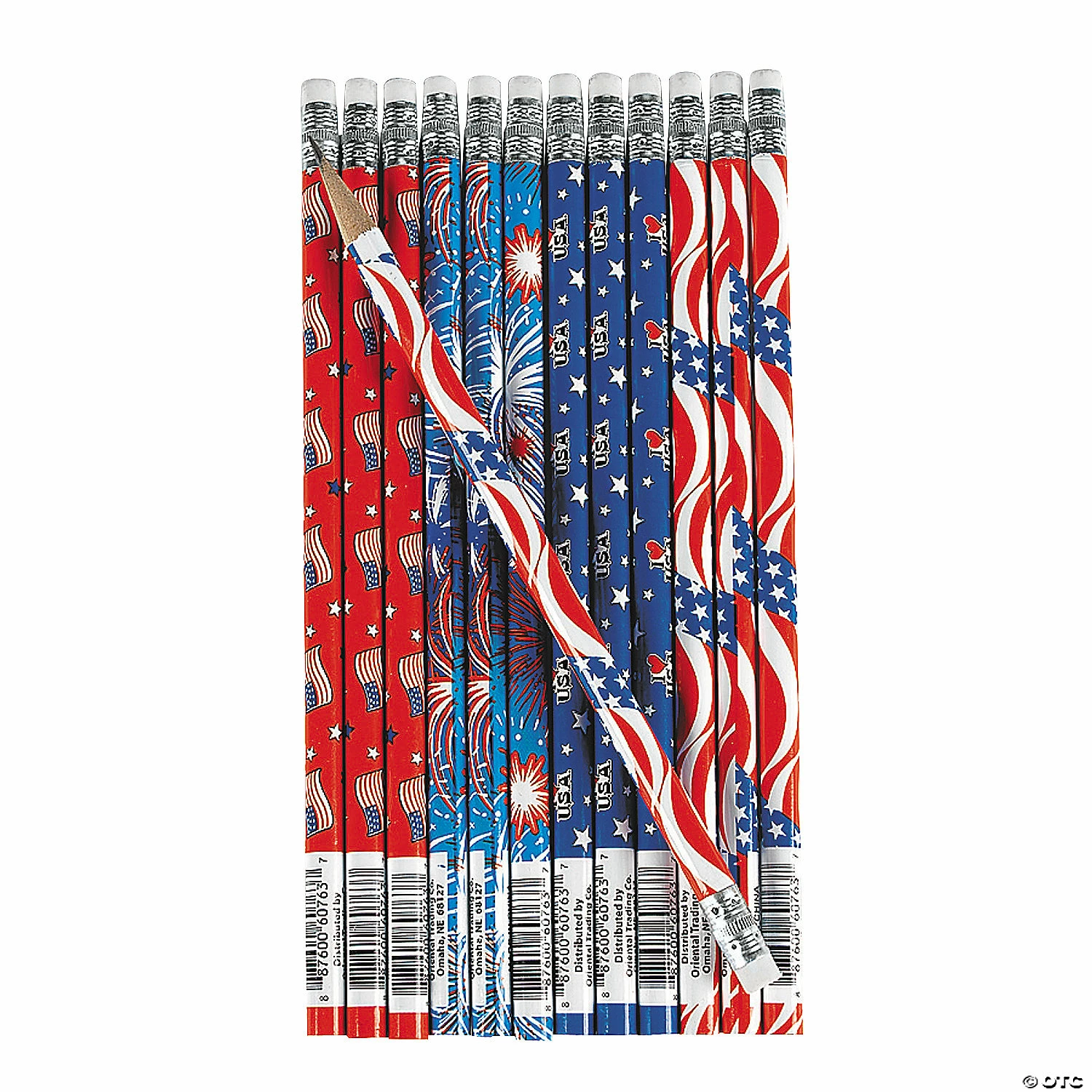 Share the American spirit with this Patriotic Pencil Assortment! Toss these star-spangled pencils in Independence Day goody bags for the “write” party favor. Each 4th of July pencil has a colorful wrapped design. Wood. (144 pcs. per unit) 7 1/2″ Assortment may vary. ยฉ OTC