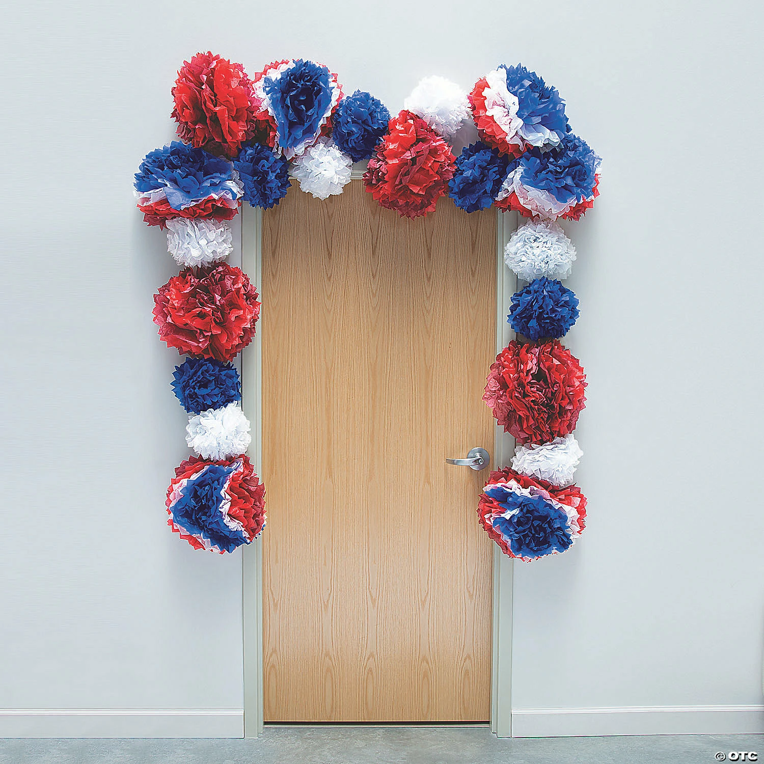 Make your doorway poppin’ with this patriotic decoration! Great for any doorway, whether you’re at home, at school or in a community center or senior center. Find more 4th of July and patriotic decorations throughout our site. Tissue paper. 72″ x 95″ ยฉ OTC