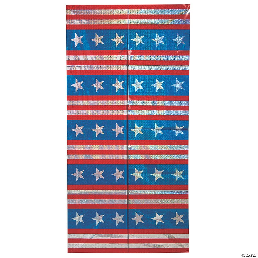 A dazzling addition to patriotic decorations, this door cover allows you to celebrate America at school, work, home or at a party. The holographic design catches the eye and the stars and stripes accompanied by the red, white and blue leaves no question as to what this door decoration celebrates. Go U.S.A.! Plastic. 3 ft. x 6 ft.