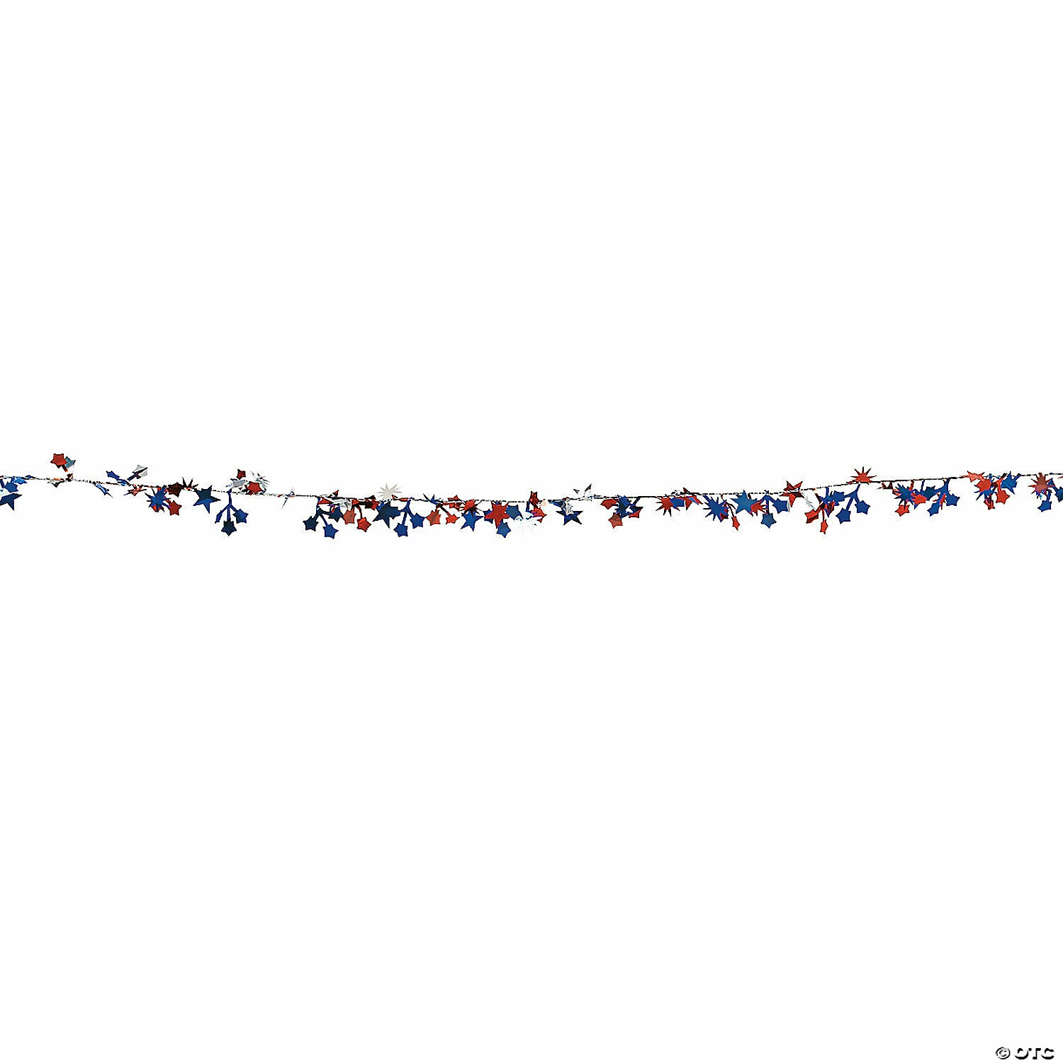 Wrap any room or railing in the spirit of stars and stripes! The flexible metal wire makes this garland easy to hang or wrap around railings for a festive 4th of July decoration. It’s also great for patriotic events and other American holidays. Wire and foil. 9 ft. © OTC