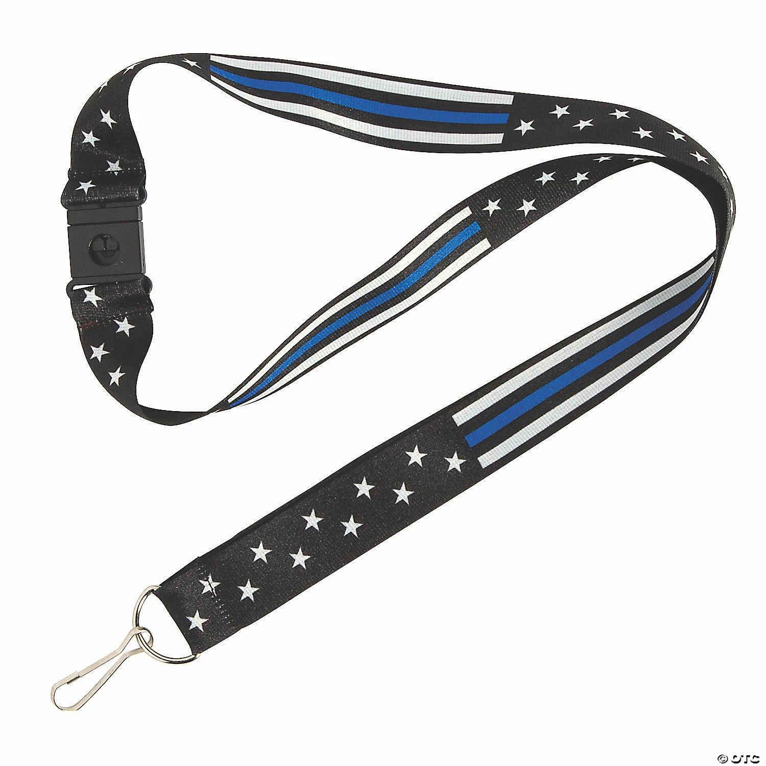 Express your gratitude and solidarity for brave law enforcement professionals with these lanyards. Featuring the unmistakable thin blue line design, these lanyards make a powerful statement and are especially suited for community events honoring law enforcement. Distribute these lanyards during parades or other gatherings to let local law enforcement know the community supports them. Nylon. 34″ with 1″ metal clip and plastic breakaway clasp. ยฉ OTC